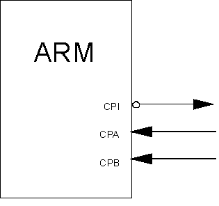The ARM's coprocessor instructions are implemented in a similar way to the undefined instructions, the difference being that the /CPI pin is pulled low whenever one of the coprocessor instructions is executed. A 4-bit field in the coprocessor instructions allows up to 16 separate coprocessors to be addressed.