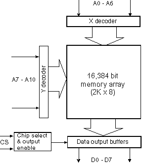 In addition, since the address lines are normally used for other chips in addition to this memory chip, there are chip select lines to selectively enable or disable the chip. The chip select line prevents the memory chip from storing data not intended for it and also prevents it supplying data on the data lines when it is not wanted.
