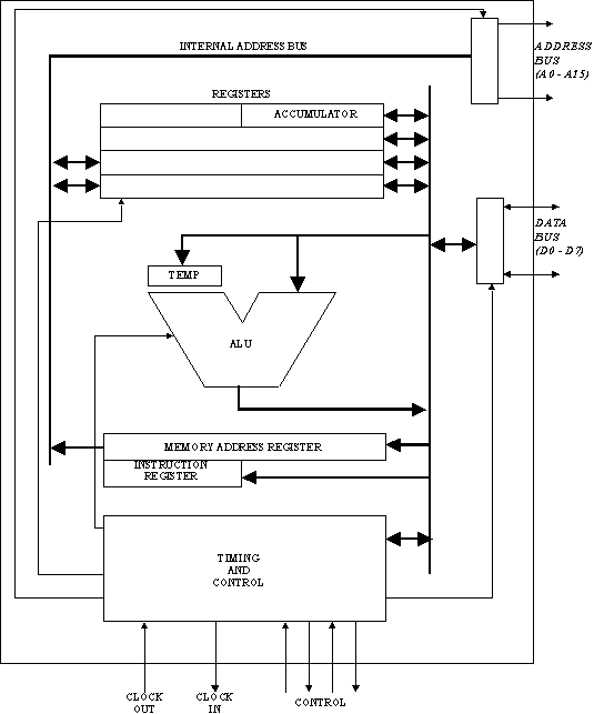In order that transfers of data occur in an orderly manner, Timing and Control circuits coordinate all such operations. Buffers are controlled by these circuits.