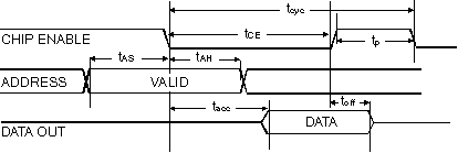 | Tcyc TCE Tacc Toff TAH TAS Tp | Cycle time /CE pulse width /CE access time Output turn-off delay Address & CS hold time to /CE Address & CS setup time to /CE /CE precharge time | 400 250 100 0 150 | 250 75 | ns ns ns ns ns ns ns |
