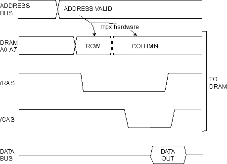 For example, a small 64K x 1 DRAM chip (4164) has the pinout below: