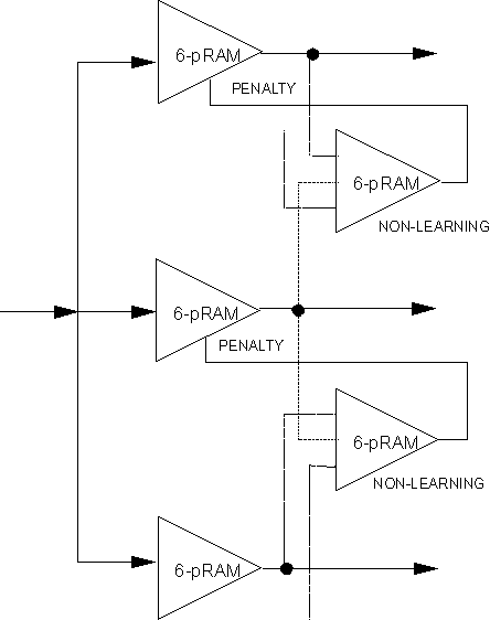 through the use on non-learning pRAMs which allow the penalty input to be a